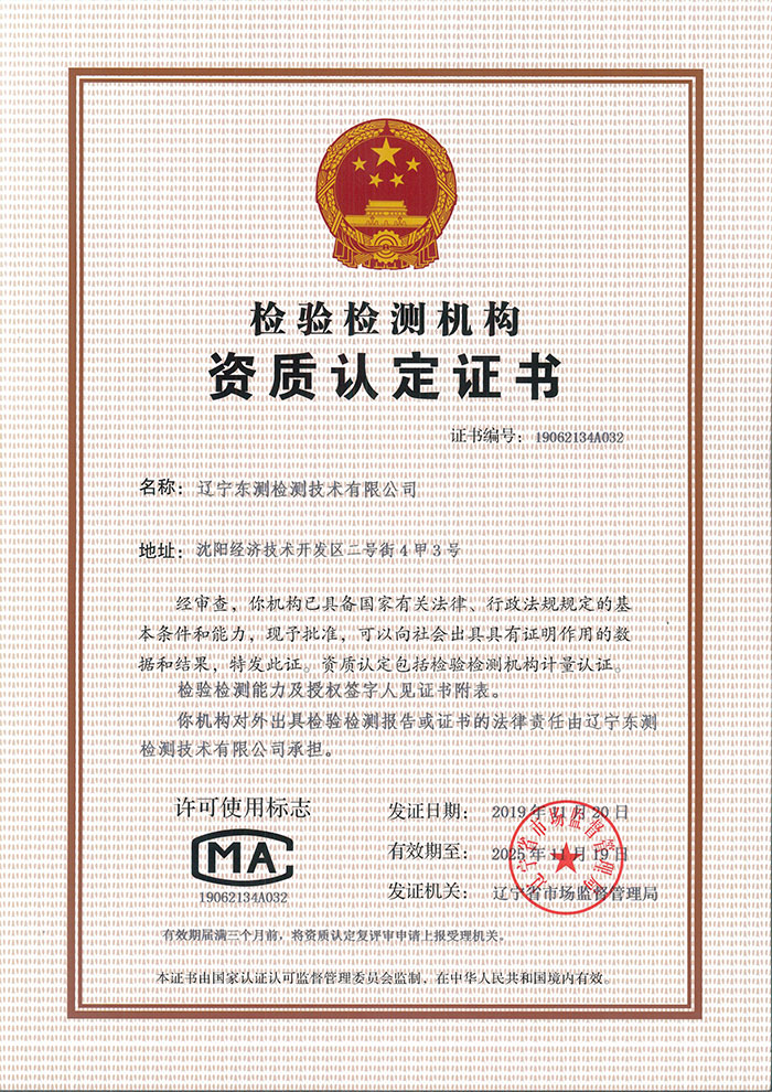 遼寧東測檢測技術有限公司成立于2007年6月21日,專注于為客戶提供計量、檢測以及技術咨詢與培訓的第三方計量檢測機構。遼寧東測檢測技術有限公司通過了中國合格評定國家認可委員會認可(CNAS),獲得檢驗檢測機構資質認定(CMA),憑借著高效的服務網絡、雄厚的技術實力以及全面的業務范圍,本著“科學、公正、準確、真誠”的質量方針,為社會提供優質計量檢測服務,打造國內具有價值的計量技術機構。